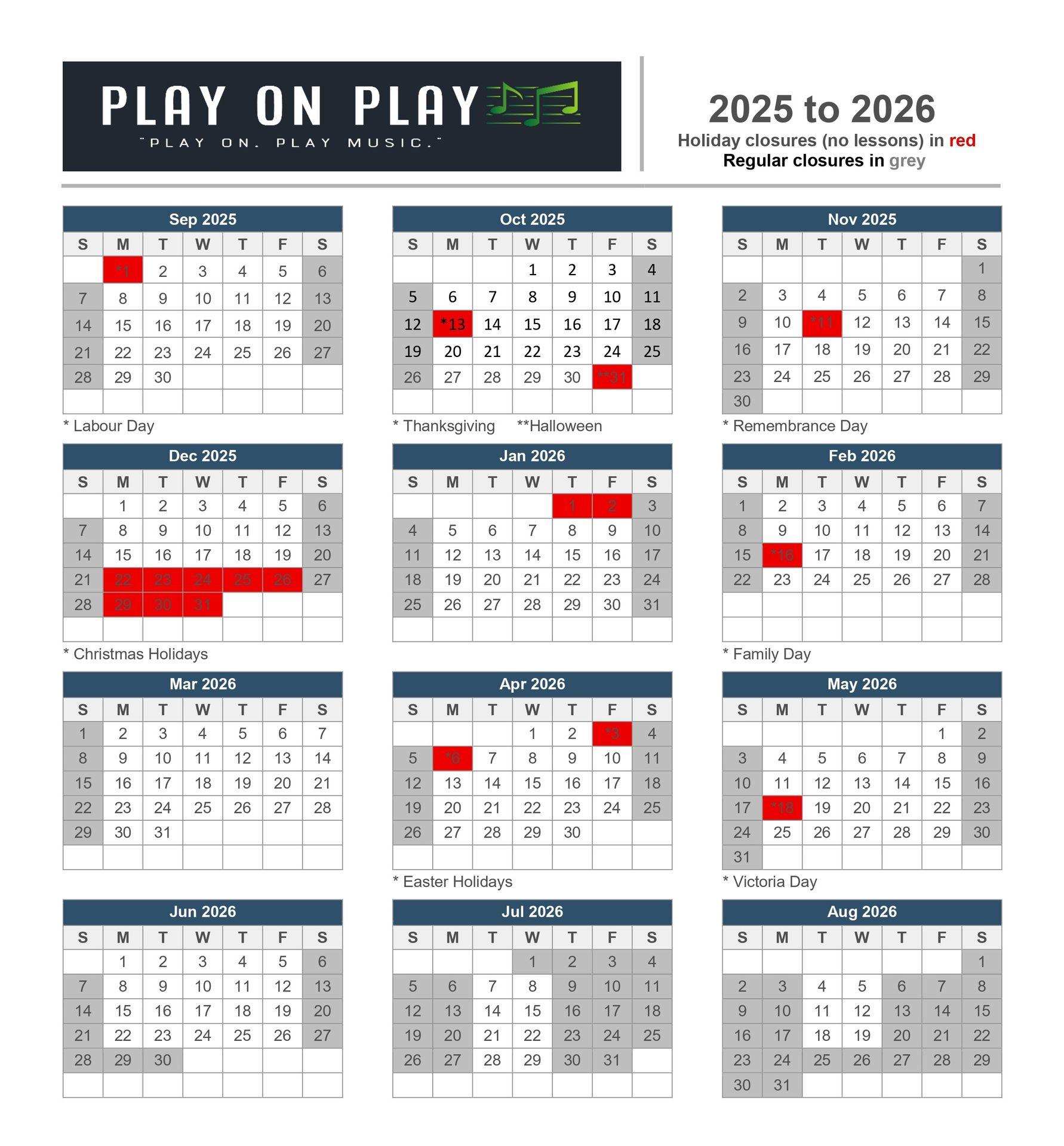 2025-2026 Lesson Calendar